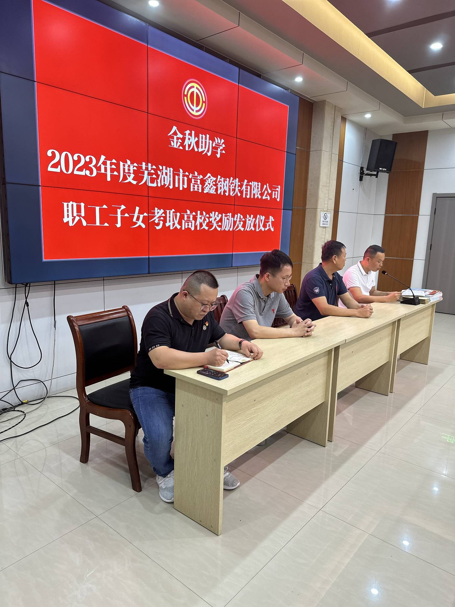 金秋助學。蕪湖市富鑫鋼鐵有限公司為2023年度考取高校的14名職工子女每人發(fā)放2000元助學資金。經統計,自公司職工子女...